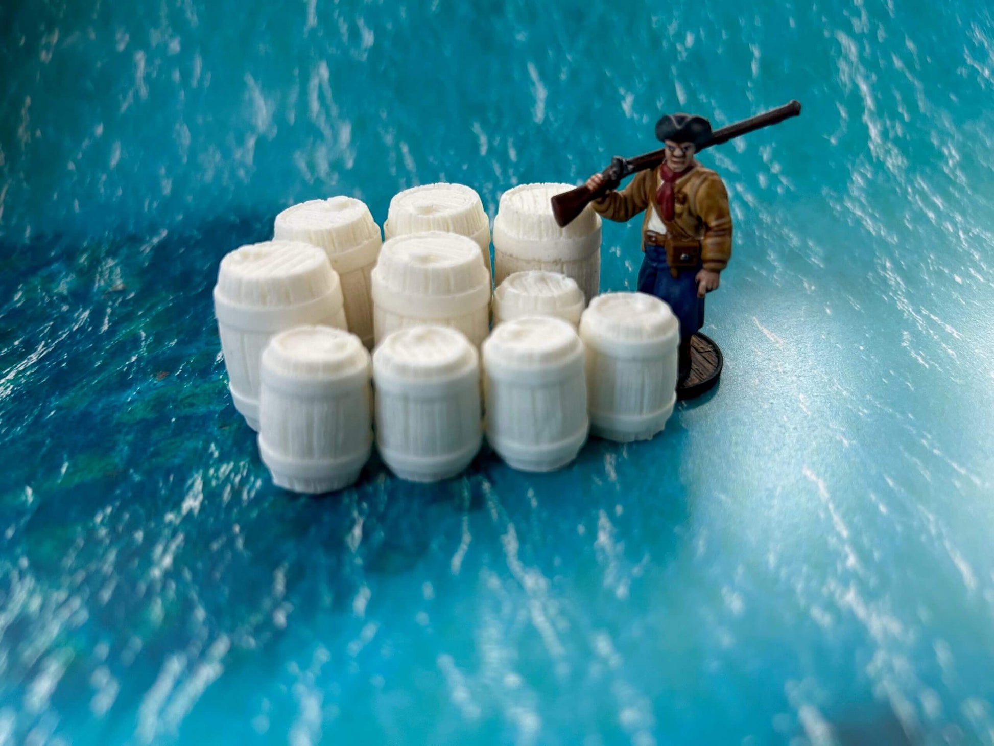 10 Resin plastic barrels. 5 small ones and 5 large ones.