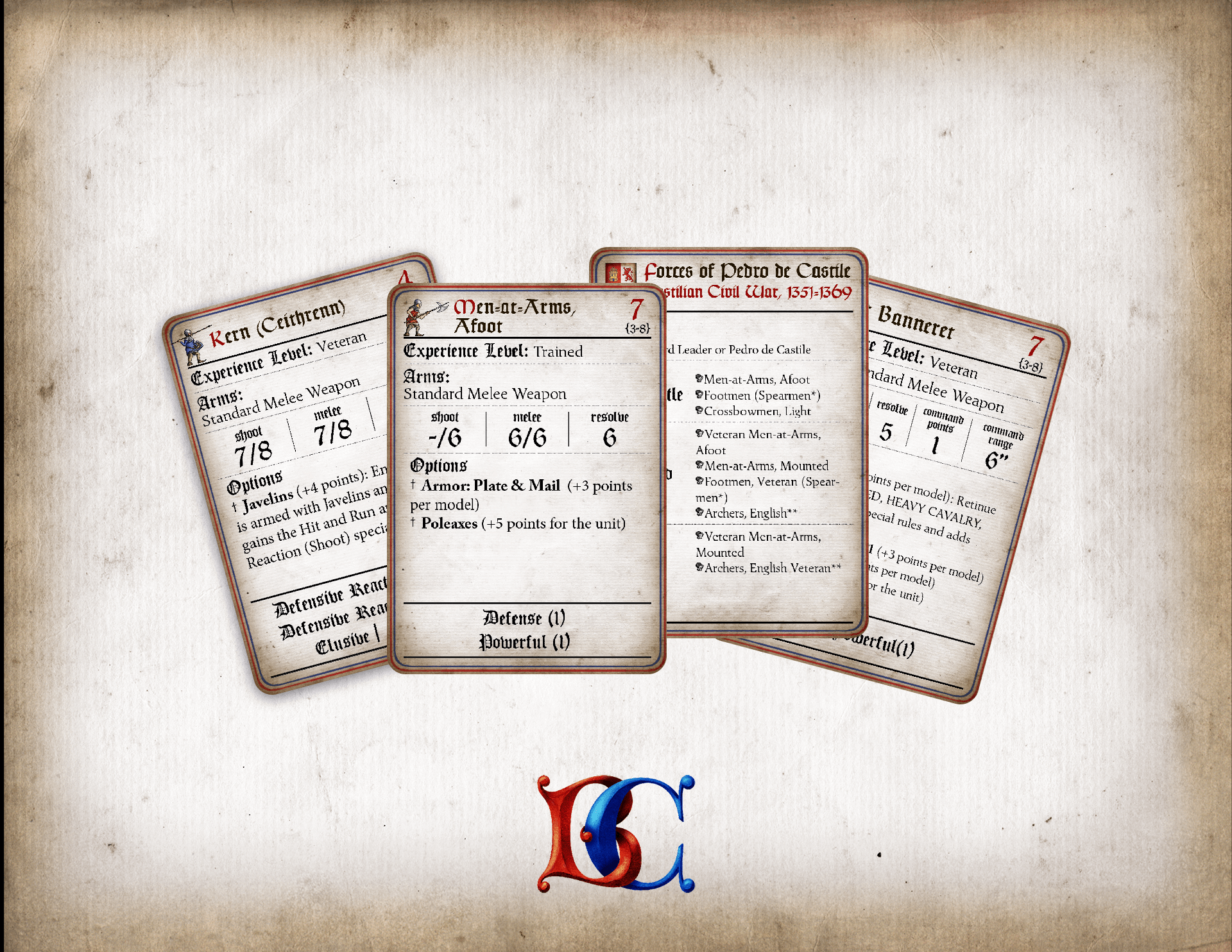 Blood & Crowns is a 28mm miniatures skirmish game that immerses you in late medieval Western Europe and the chaotic period known as the Hundred Years’ War. Blood & Crowns allows players to recreate the countless skirmishes, raids, sallies, acts of piracy and all manner of small-scale engagements that hide in the shadows of history between battles such as Crecy, Poitiers, Najera, Agincourt and Castillion. It is not a game with hordes of faceless masses, but of individual warriors that puts players in the armor of the combatants at the level of fighting where personal combat was the most visceral. Where blood was spilled and crowns were won and lost!
