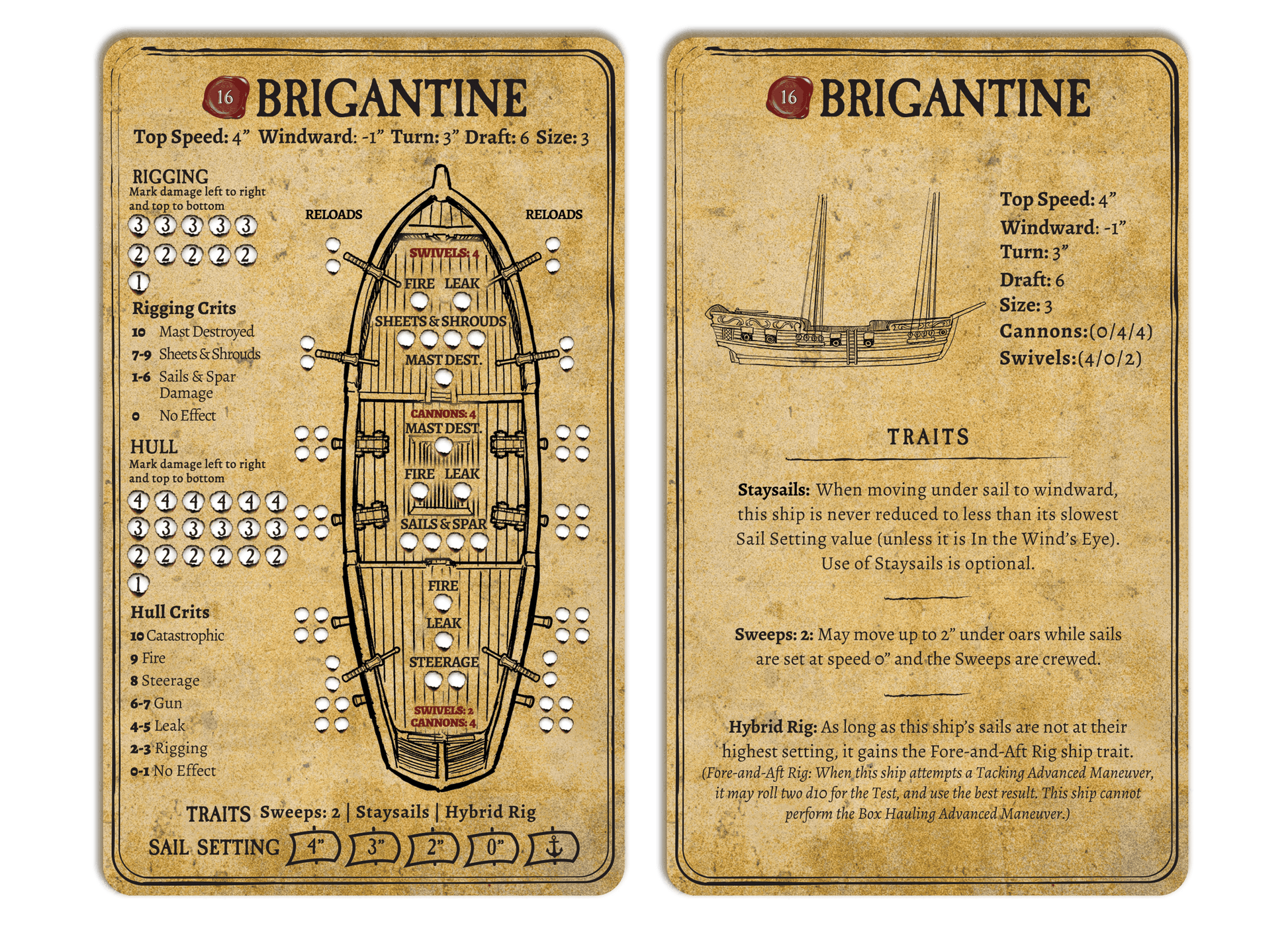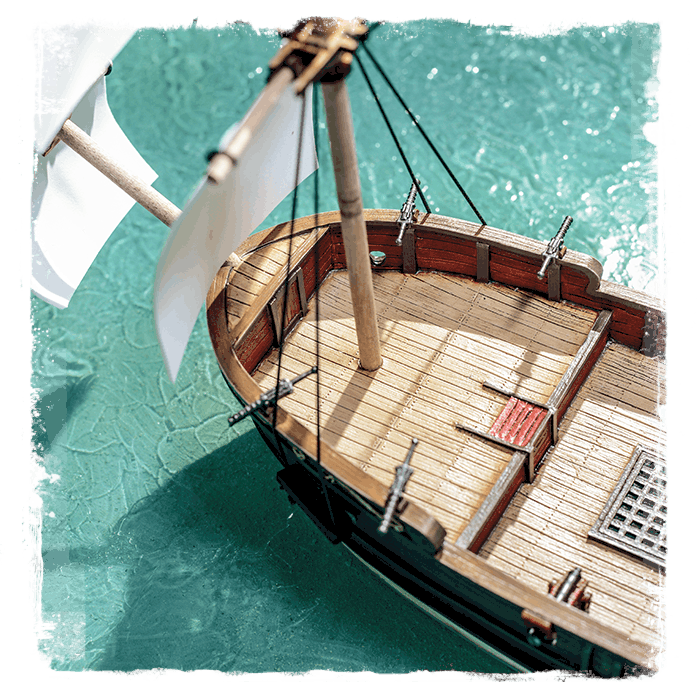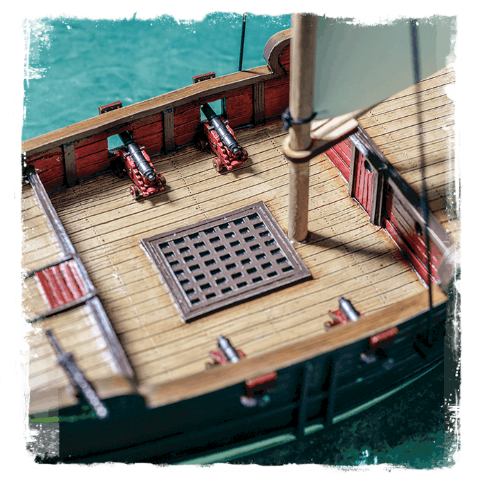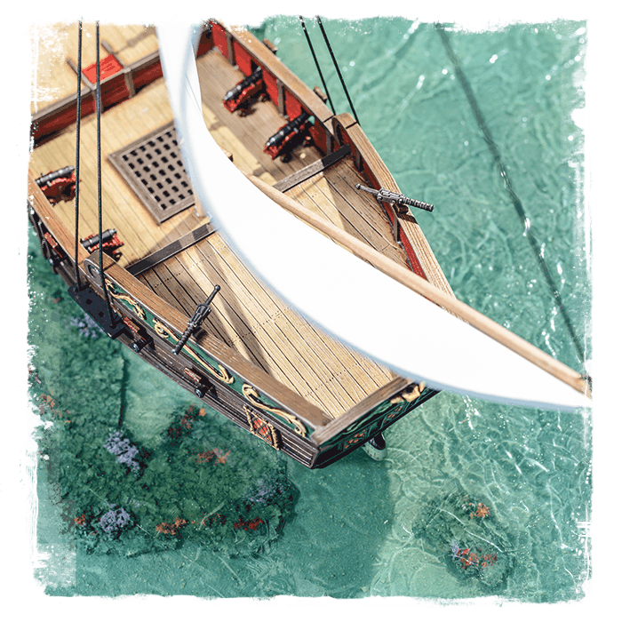 Brigantine: Quick, sturdy and well-armed, the brigantine is suited to handle nearly any situation. This ship’s shallow draft and mixed rig configuration gives it a versatility which made it very popular among Pirate and Privateer crews.