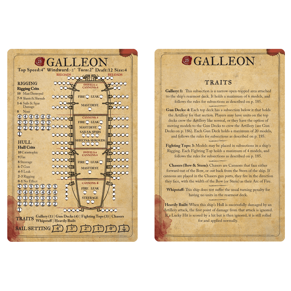 Galleon: The Spanish Galleon is a massive ship and formidable foe with a hull constructed specifically for warfare and ferrying treasure hoards.