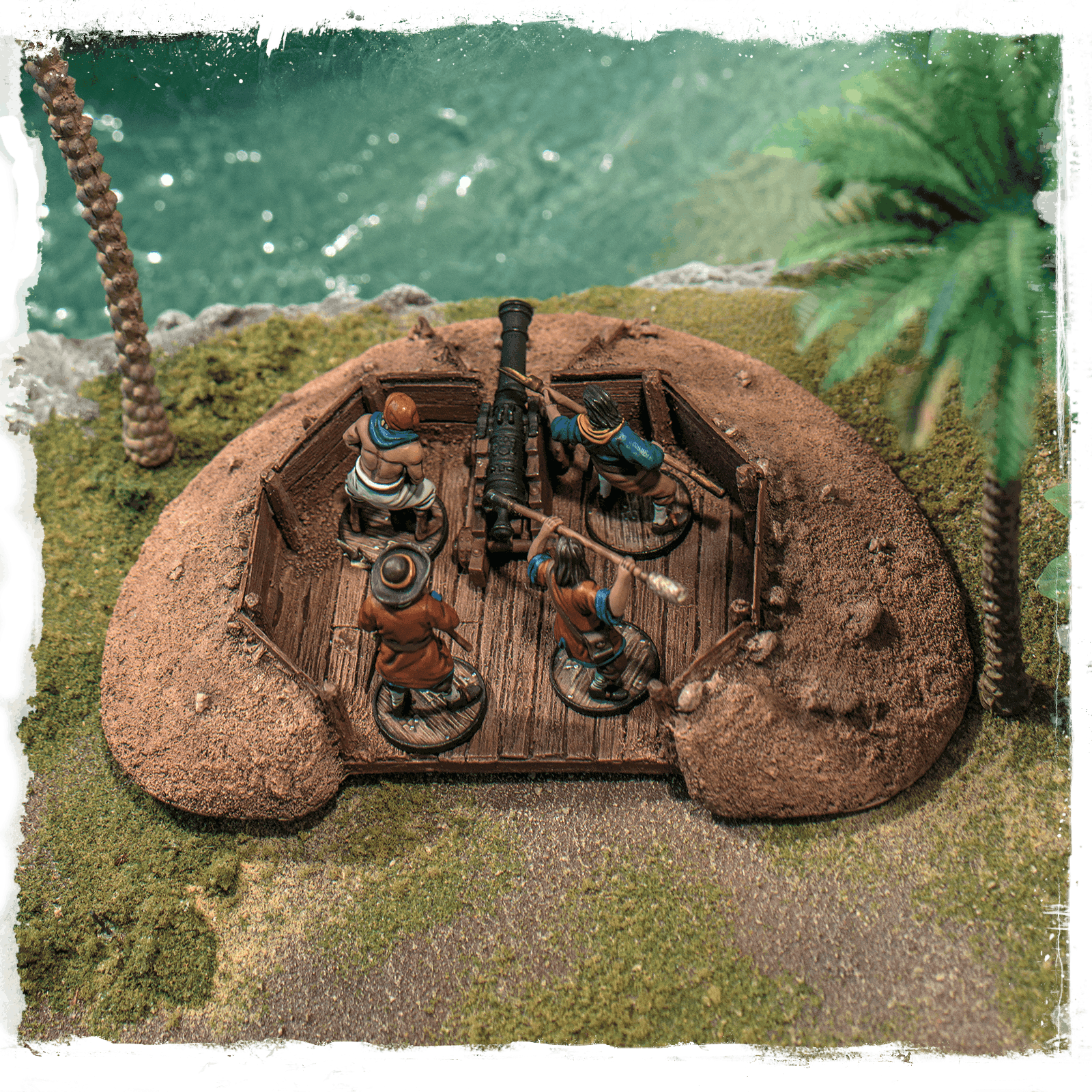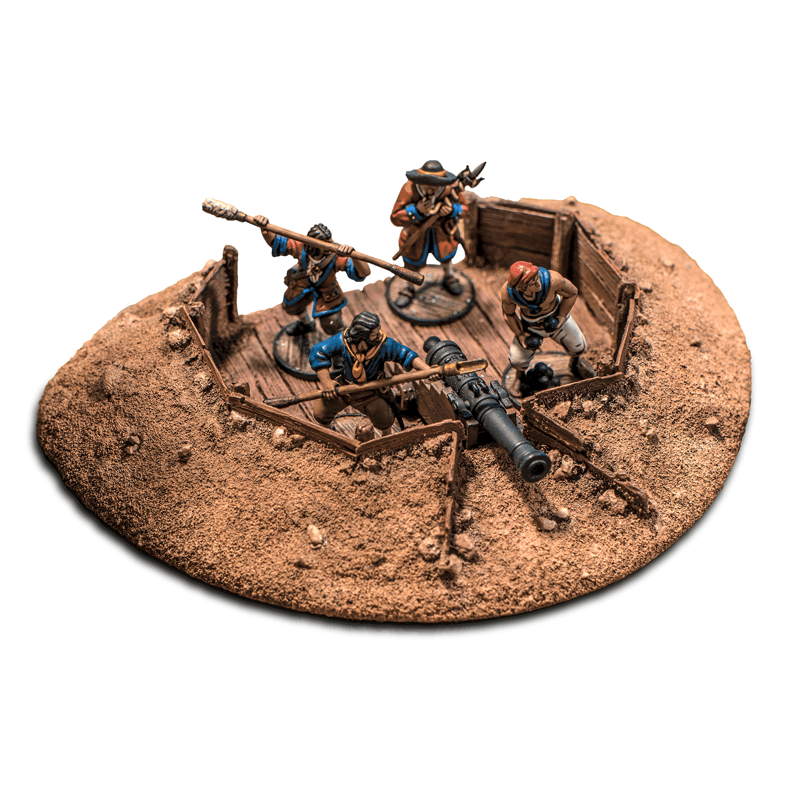 The ubiquitous earthwork fortification has been used for centuries. These individual gun emplacements will protect your gun crews from return fire.